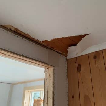 Har ett hus från 1800 talet med kök som troligen renoverades på 1930 talet. Innertaket, någon form av papptak, har plötsligt spruckit tvärs över rummet. Troligen triggat av att huset i vinter är uppvärmt, det brukar vara oeldat. Hur lagar jag det?
