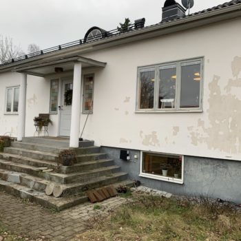 Dessa båda 1700-talsskorstenar renoverades för ca åtta år sedan efter antikvarisk rekommendation med hydrauliskt kalkbruk. Redan året efter började putsen släppa och har lagats två gånger med annat, hårdare bruk men sönderförfallet fortsätter. Grundorsaken antas var frost när bruket skulle bränna. Hur går man tillväga för att göra hållbar reparation med hydrauliskt kalkbruk? Eller finns det bättre alternativ?