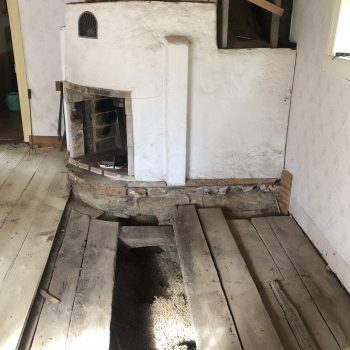 Vi renoverar en småskola från 1925 (huset är dock äldre men brann 1920, och byggdes upp 1925). Skolan är uppbyggd i dubbel tegel utan puts med 10-12 mm luftspalt, ytterväggen står på stengrund, Grunden är fylld med diverse sten/grus upp till ett avstånd på ca. 50 mm från trägolvet. I grunden finns även luftkanaler, som jag antar går till murstocken (har inte grävt ur ännu). Uppvärmning av huset är kaminer och eluppvärmning.
