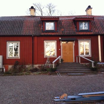 Vi har just köpt ett hus strax norr om Östersund, byggt 1912 enligt Skatteverket. Huset har timmerstomme och liggande panel som idag är målad ljusgul/beige med vita foder etc. Fönstren är engelskt röda. Jag har hittat ett foto som jag tror är från när huset var nybyggt, och inte har panel. Farstukvisten är till och med omålad och inte helt färdigbyggd. Jag funderar över fönsterfodren…