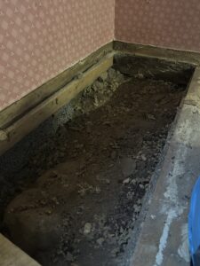Ni ska vara tacksamma att ha en fungerande torpargrund. Gullfiber i trossbottnar har en begränsad hållbarhet och på tiden när det började användas var det med en övertro på materialet som i själva verket visat sig inte lämpa sig särskilt bra. Detta på grund av att gullfiber ställer höga krav på luft- och fukttäthet i konstruktionen. När ni nu lägger tillbaka, eller byter ut, trossbottenbrädorna bör ni först vindtäta med förslagsvis Örnpapp AC350 som läggs i bottnarna med ett uppvik på 2-5cm på bjälkarna och fyll på med rikligt med kutterspån som sedan trampas ner och får en upptoppning med extra kutterspån så att det