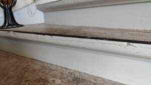 Vi bor i ett hus från 1886 och har en trappa som innan ombyggnad fungerade som trappuppgång mellan ett antal lägenheter i huset. Någon gång (gissningsvis på 50-talet enligt grannar) har man jämnat ut de nerslitna trappstegen genom att gjuta någon form av cementliknande material på dem. Nu försöker jag ta reda på vad det är för material för att kunna behandla och bevara det på rätt sätt. Min gissning hittills är att det är magnesit. Kan det stämma eller är jag helt fel ute?
