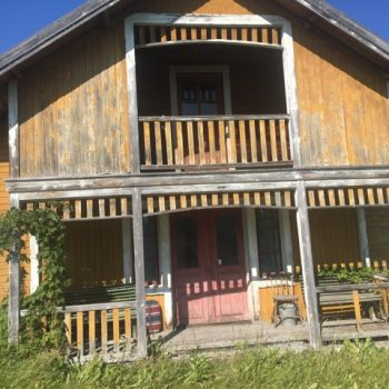Vi diskuterar med hantverkare om tillvägagångssätt vid renovering av grund till hus med timmerstomme.