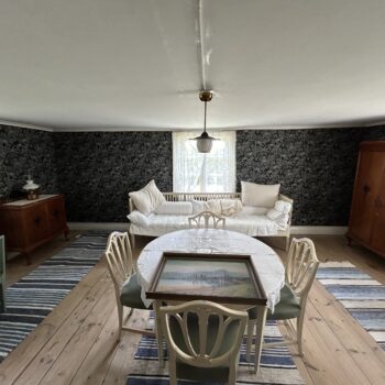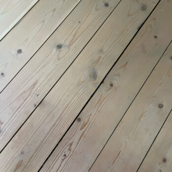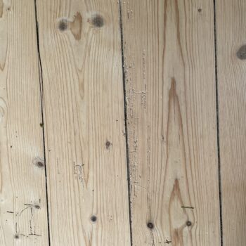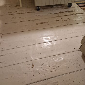 Såpa eller skura undergolv av furu i ett funkishus från 40-talet