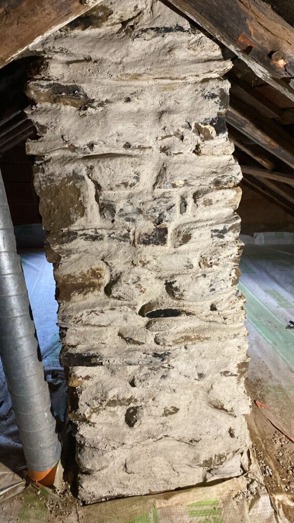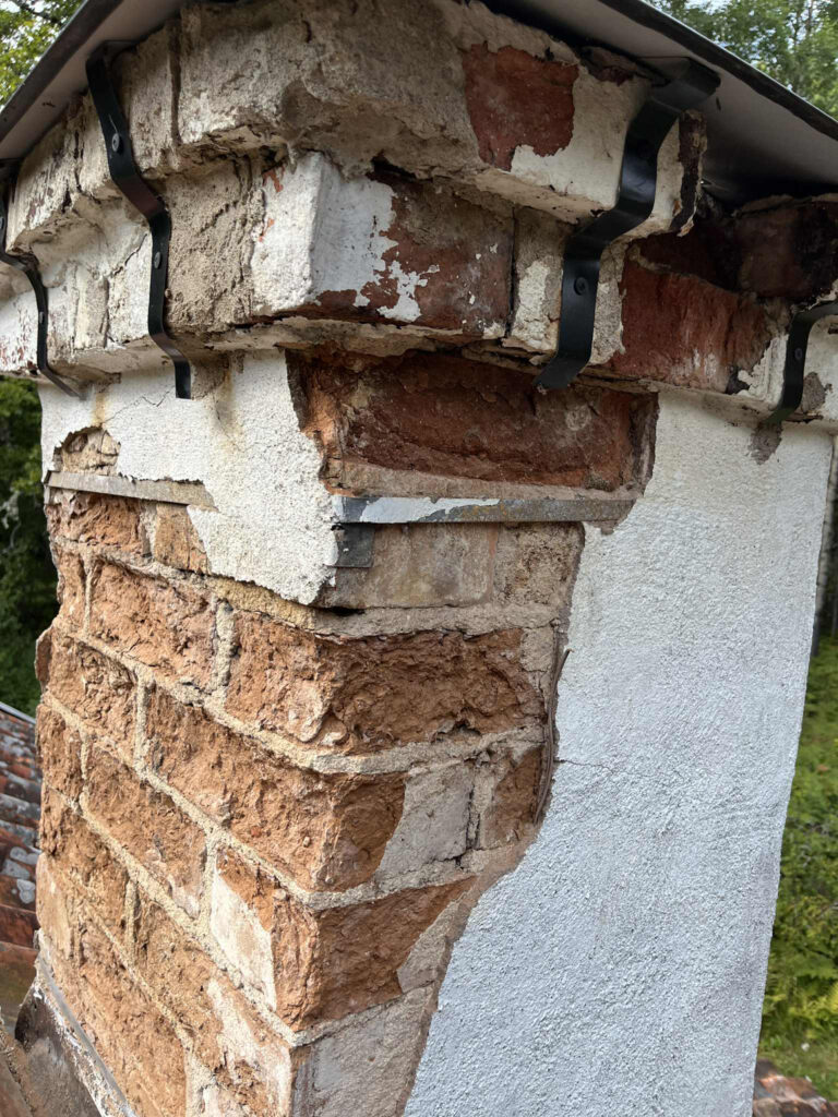 Skorsten där teglet vittrat under putsen?