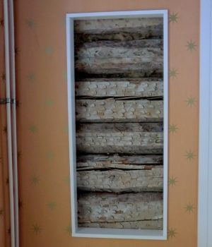 Hej, jag undrar över mönstret i stockarna på bif. bild av vägg i byggnad från 1800-talet. Har det förutom att vara stiligt någon praktisk betydelse och benämning?